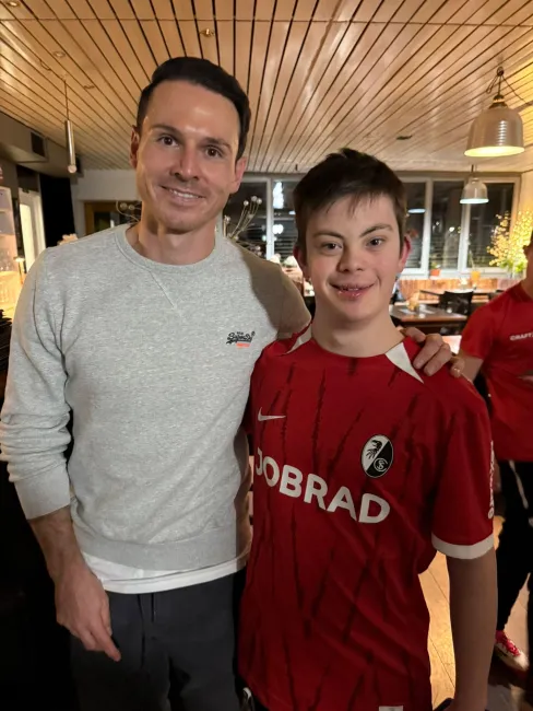 Der Spieler des SC Freiburg brachte als „knecht Ruprecht“ zusammen mit Nikolaus, verkörpert von Schauspieler Martin Wangler („Die Fallers“), die Geschenke und hatte für jede Spielerin und jeden Spieler eine persönliche Geschichte und Anekdote parat. Bei Speis und Trank erlebten die rund 25 Teammitglieder mit und ohne Handicap einen kurzweiligen Jahresschluss.
