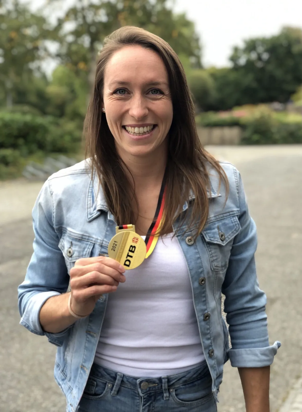 Nachdem im letzten Jahr pandemiebedingt keine Mehrkämpfe stattfinden konnten, war die Vorfreude auf die diesjährigen Deutschen Mehrkampfmeisterschaften besonders groß. In Eutin holte die Freiburger Turnerin vom PTSV Jahn Freiburg Sabine Storz in diesem Jahr einen weiteren Deutschen Meistertitel im Jahn-Kampf. Aufgrund von unterschiedlichen Möglichkeiten in der Wettkampfvorbereitung fand für alle Jahnkämpfer*innen statt eines Neunkampfes ein Sechskampf statt. Der Wettkampf begann mit Turnen (Stufenbarren und Boden) gefolgt von der Leichtathletik mit Kugelstoßen und 100m-Sprint sowie dem Kunstspringen vom 1m-Brett und dem 100m-Schwimmen. Am Stufenbarren, dem ersten Gerät, zeigte Sabine eine nahezu fehlerfreie Übung. Mit starken 12,25 Punkten ging es an den Boden. Neben sauberen