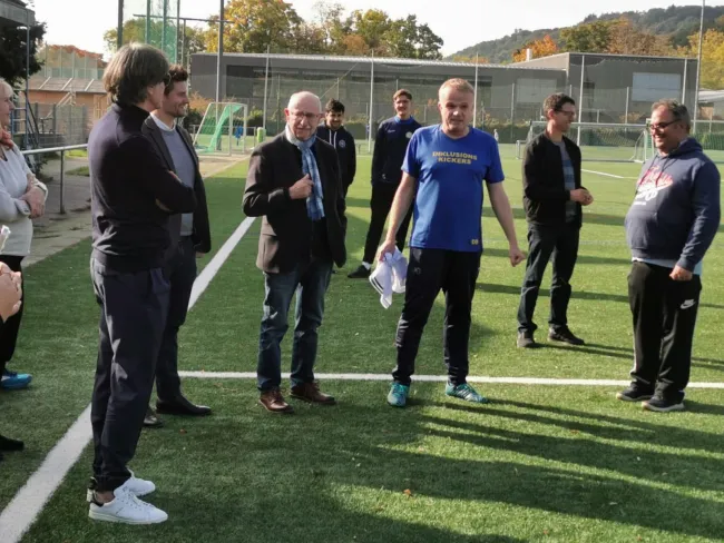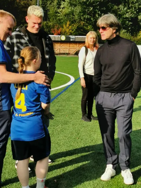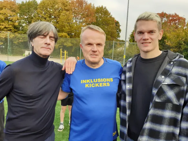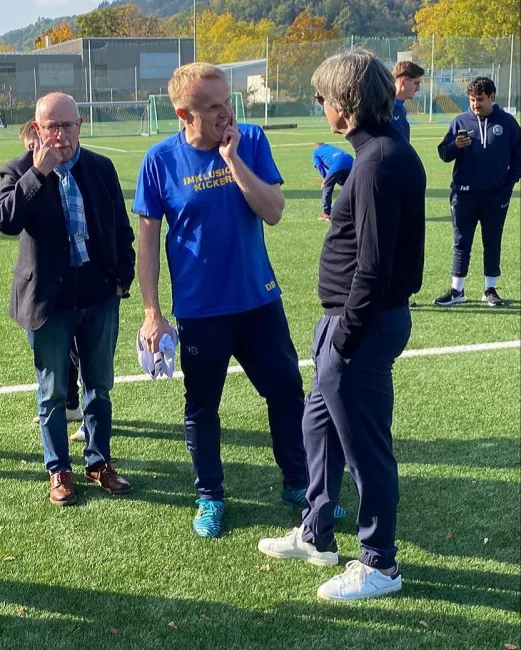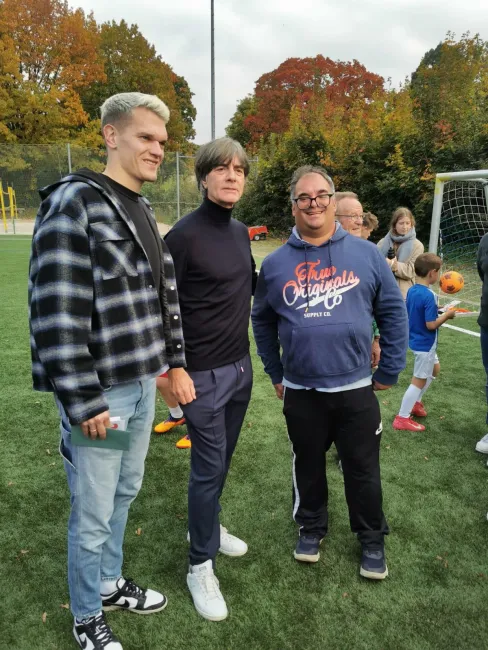 Löw und Ginter lobten das nachhaltige Inklusions-Fußball-Projekt beim PTSV Jahn, beobachteten voller Begeisterung das Trainingsspiel und traten später selbst noch gegen den Ball. „Schön zu sehen, mit wie viel Begeisterung, Herzblut und Freude hier zusammen Fußball gespielt wird“, lobte Löw. Nicht der Leistungsgedanke stehe hier im Mittelpunkt, sondern die Begeisterung an der Bewegung und der Gemeinschaft, ergänzte Schmidt. „Ein herausragendes Ehrenamts-Projekt, dass unbedingt unterstützt werden muss“, so Schmidt.