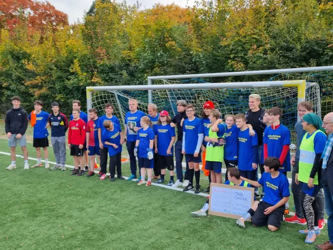 Fast eineinhalbstunden lang beantworten die beiden Fußballstars die neugierigen Fragen der Spielerinnen und Spieler und standen gerne für Autogramme und Selfies zu Verfügung. Beim abschließenden Gruppenbild wurde dann noch einmal an den unvergesslichen WM-Sieg 2014 in Rio erinnert (1:0 gegen Argentinien). Mit Sicherheit ein unvergesslicher Fußballfreudentag für alle Beteiligten.