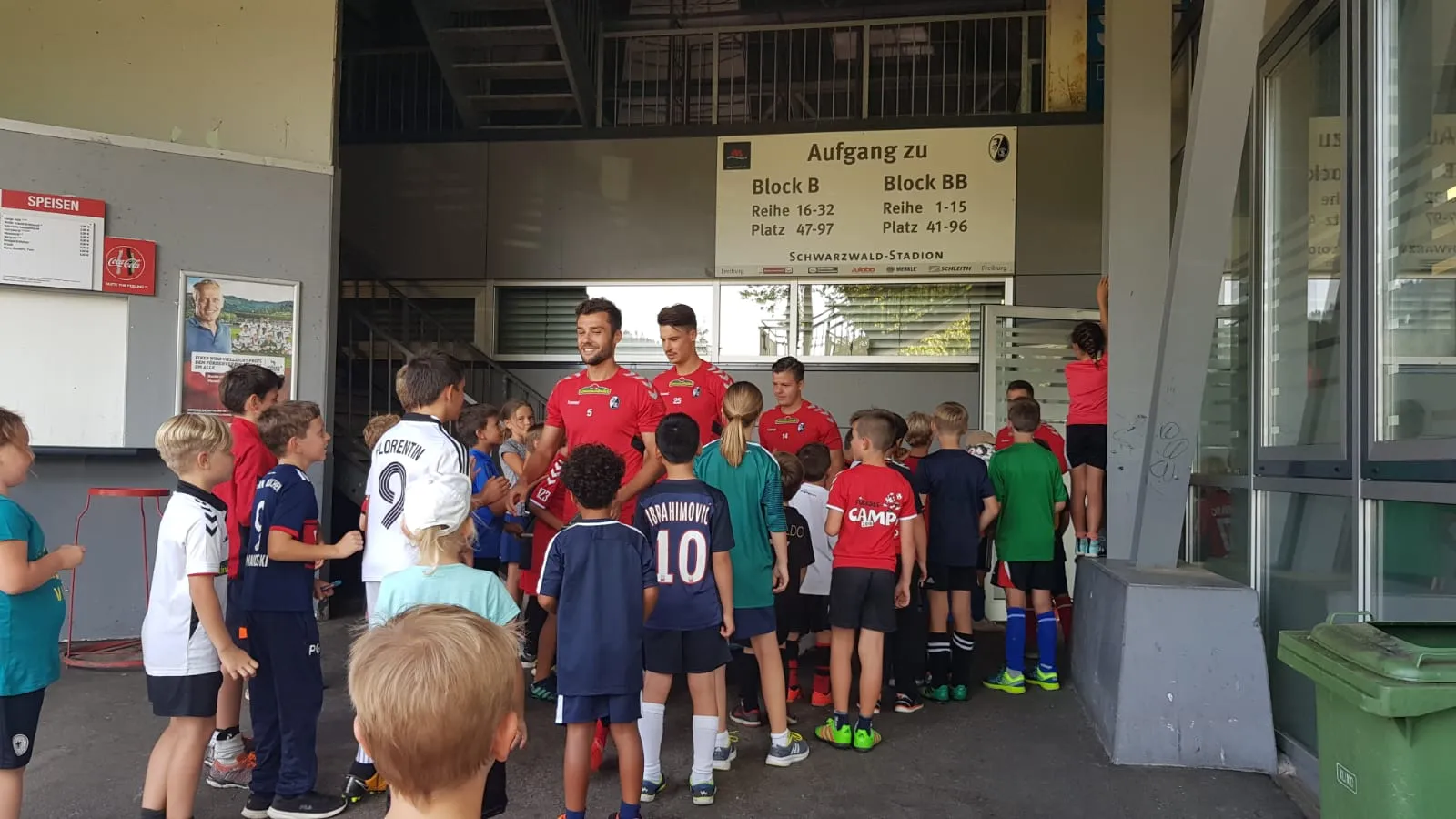 Insgesamt drei Fußballcamps standen in den Sommerferien 2018 beim PTSV Jahn Freiburg auf dem Veranstaltungskalender. Eines in der zweiten Ferienwoche, direkt im Anschluss an das Sportferiencamp und die anderen beiden in der letzten August-, bzw. der ersten Septemberwoche. Nach dem „Check-In“ und der Begrüßung am ersten Tag, wurden die Kinder in drei Altersklassen eingeteilt, in welchen sie die Woche über ein altersgerechtes Training erfahren durften. Nach erstem Kennenlernen und angestrengten Versuchen alle Namen behalten zu können, konnte die Kickerei dann auch schon beginnen. Die Vormittagsessions beinhalteten stets diverse Pass-, Torschuss-, oder Spielübungen. Dennoch sollte es nicht als normales Vereinstraining ablaufen, sondern ausschließlich Übungen beinhalten, die den Kindern die Freude am Fußballspielen vermitteln und ihnen ein Lächeln ins Gesicht zaubern.  Nachdem Mittagessen mit anschließender Mittagspause (inklusiver „aktiver Erholung“ 😉) wurden nachmittags in verschiedenen Turnierformen Tagessieger ausgespielt, welche am nächsten Tag ihre Belohnung in Form von Süßigkeiten erhielten. Am Freitag absolvierte jeder Teilnehmer abschließend noch das PTSV-Abzeichen. Jedes Kind erhielt zudem eine Urkunde und herausragende Leistungen wurden unter Applaus gesondert ausgezeichnet. Trotz des identischen Rahmenprogramms, hatte jedes der drei Camps seine eigenen Charakterzüge. Das erste Camp versprach mit über 50 Teilnehmern direkt eine Mamutaufgabe für die Betreuer zu werden. Doch glücklicherweise beinhaltete dieses Camp ausschließlich super brave und ruhige Kinder, sodass auch die große Anzahl kein Problem darstellte. Beim zweiten Camp machte dann der Wetterbericht ein wenig sorgen, sodass der Strandbadausflug bereits am zweiten Tag durchgeführt werden musste. Zum Glück blieb es widererwartend bis Donnerstag weitestgehend trocken, bevor Freitag leider wortwörtlich ins Wasser fiel, sodass wird in die Karl-Burg-Halle ausweichen mussten. Im dritten Camp spielte das Wetter glücklicherweise wieder mit. Eines der Highlights dieses Camps war der Ausflug zum öffentlichen Training des SC Freiburg, bei der die Kids ihre Autogrammjäger-Qualitäten beweisen konnten. Ein großes Dankeschön geht an Fabian Kunitzky für die hervorragende Planung und Organisation aller Feriencamps 2018! Ebenfalls bedanken möchten wir uns bei der Gaststätte „Schwarzwaldblick“ für das tägliche Mittagessen, sowie bei allen Betreuern (Annika, Tara, Fanny, Fritzi, Jana, Paula, Max, Julian, Rasmus, Benni, Daniel, Philipp, Jonathan, Samuel, Niklas & Fabian ) für deren großes Engagement!