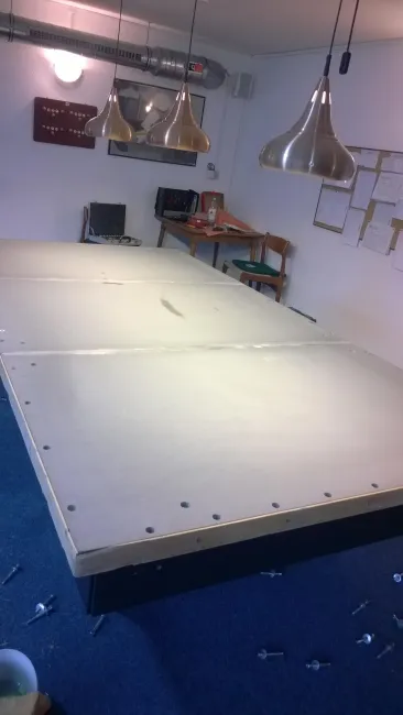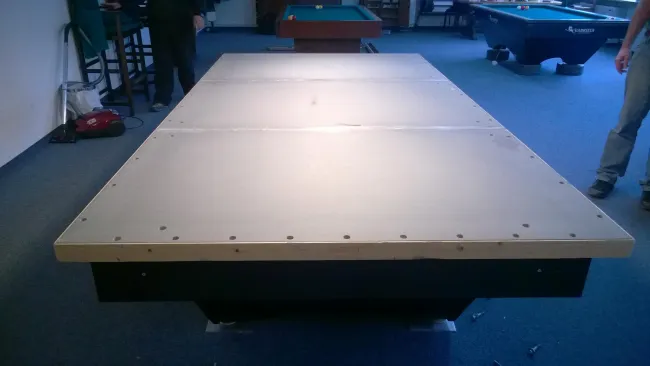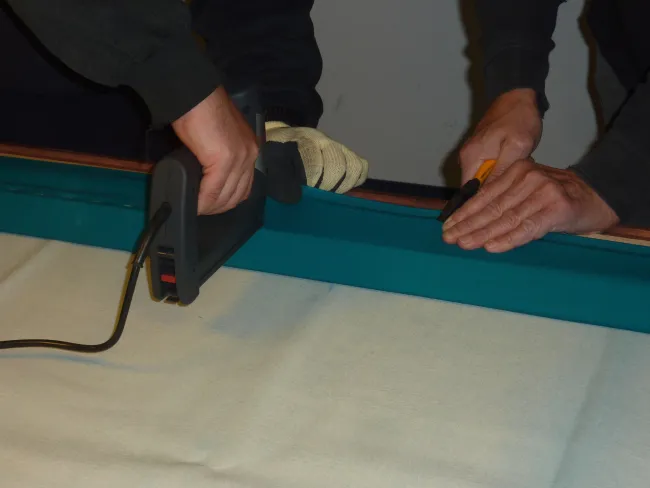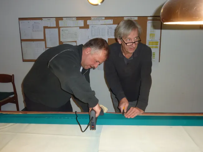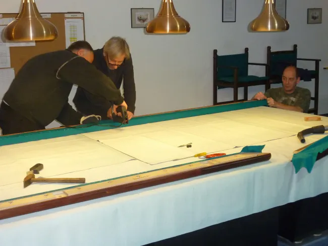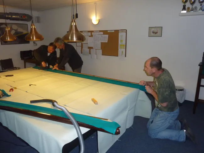 Am 27.12.2017 haben sich einige Spieler im Billardraum getroffen um unserem grossen Billardtisch, dessen altes Tuch deutlich in die Jahre gekommen ist, wieder zu neuem Glanz zu verhelfen.