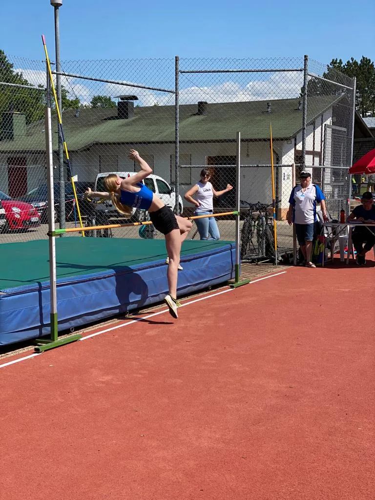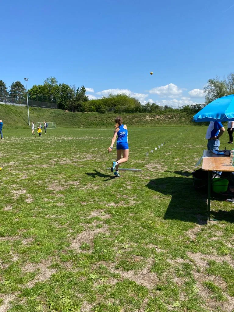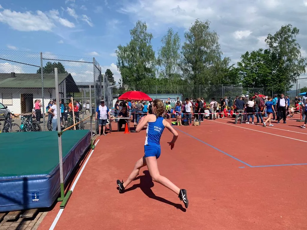 Nach langer Coronapause haben am vergangenen Samstag die Kreisschülermehrkampfmeisterschaften in Munzingen stattgefunden. Für einige Athlet*innen des PTSV Jahn war es der erste Wettkampf, so auch für einige Kinder der U12. Sie schlugen sich toll! Die weibliche U12 wurde mit Julie-Marie Wich, Linn Geisler und Tessa Möllinger 1. in der Mannschaftswertung mit 3.001 Punkten. Neben der U12 traten auch die Altersklassen U14 und U16 an. Trotz langer Coronapause wurden viele neue Bestleistungen erreicht. Rosa von Fournier gewann den Dreikampf der W12 mit starken 1.152 Punkten, dicht gefolgt von Hanna Meißner mit 1.116 Punkten. Gemeinsam mit Eva Maria Kapferer entschieden sie den Dreikampf-Mannschaftswettkampf mit insgesamt 3.363 Punkten für sich. Auch im Vierkampf war die U14 erfolgreich. Elisabeth Radicke wurde 3. mit 1.389 Punkten. In der Mannschaftswertung erreichten sie Platz 2. In der W14 stehen gleichen 3 PTSVlerinnen auf dem Treppchen. Louisa Olu gewinnt den Vierkampf mit 1.661 Punkten, gefolgt von Ann-Sophie Lipp auf Platz 2 und Martha Munkel auf Platz 3. Auch die W15 zeigte sich stark im Wettkampf. Platz 2 erlangt Martha Schüder mit 1.618 Punkten. Die U16 füllt außerdem in der Mannschaftswertung das gesamte Podium. Platz 1 belegen Louisa Olu, Martha Schüder und Ann-Sophie Lipp mit 4.867 Punkten, gefolgt von Martha Munkel, Anne Uherek und Theresa Fütterer auf Platz 2 und Jule Birmes, Lily Hilberath und Philine Mohn auf Platz 3 mit 4,512 Punkten. Alles in allem war es ein erfolgreicher Wettkampftag bei bestem Wetter!