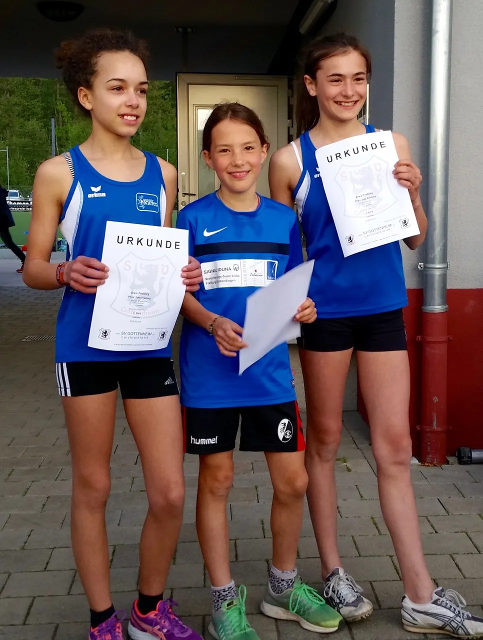 Am Mittwoch, den 25. April 2018 wurden in Gottenheim die ersten Kreismeisterschaften der neuen Saison ausgetragen. Bei der weiblichen U14 konnte der PTSV drei Staffeln stellen und sich mit großem Vorsprung in einem Feld von acht Staffeln durchsetzen. Die siegreiche Staffel über die Distanz von 3 x 800 m bestand aus der Startläuferin Nina Wich, Franziska Eckerfeld und ihrer Zwillingsschwester Sarah Eckerfeld. Diese drei gewannen in einer Zeit von 8:49,20 min. Dabei waren Sarah und Franziska Eckerfeld erst wenige Tage zuvor bei den Läufen des Markgräfler Cups in Sulzburg und Münstertal gestartet, welche ihnen noch in den Knochen steckten. In Gottenheim konnte ein weiterer Podestplatz von Victoria Wunderlich, Ellen Ganter und Livia Körber erkämpft werden. Sie erreichten einen tollen dritten Platz. Komplettiert wurde das gute Ergebnis von der dritten Staffel des PTSV mit Isabella Römer, Lilian Tutor und Maja Wagner. Die vollständige Ergebnisliste ist hier >>>. Auch bei den Läufen des Markgräfler Cups waren die Eckerfeld-Zwillinge stark in ihrer Altersklasse. In Sulzburg konnten sie die ersten beiden Plätze belegen. Im Münstertal hingegen konnte Sarah ihre Siegesserie trotz eines schweren Sturzes, indem beide Schwestern verwickelt wurden, fortsetzen, wobei Franziska ihren Verletzungen nachgeben und das Rennen verlassen musste. Sie kann sich nun noch in vier weiteren Läufen wieder in der Gesamtwertung nach vorne kämpfen. Text und Fotos: Patricia Schwitalla