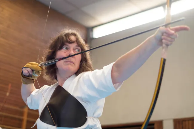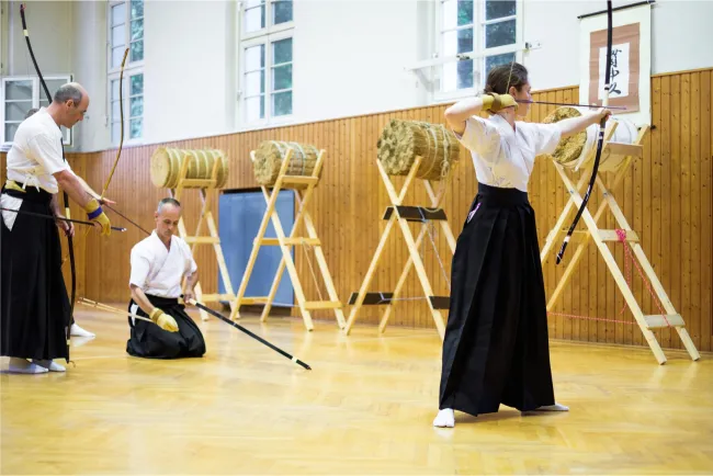 Im Kyudo bringen wir dir neben dem Bogenschießen bei, wie du ganz genau auf deinen Körper achten, dich in einer Gruppe koordinieren, und jede noch so unerwartete Situation mit Ruhe und Gelassenheit meistern kannst.