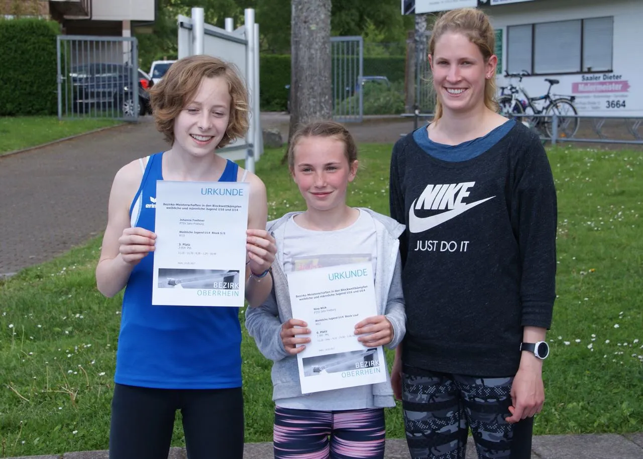 Am 14.05.17 fanden die Bezirksmeisterschaften der Blockwettkämpfe U16 / U14 in Wehr statt. Erstmals nahmen zwei Athletinnen des PTSV an den Mehrkämpfen teil. Nina Wich (Jugend W12) startete im Block Lauf mit 75 m, 60 m Hürden, Weitsprung, Ballwurf und 800 m. Johanna Foellmer (Jugend W13) wählte den Block Sprint/Sprung mit 75 m, 60 m Hürden, Weitsprung, Hochsprung und Speerwurf. Für beide Athletinnen war es die erste Teilnahme an einem Wettbewerb im Hürdenlauf.