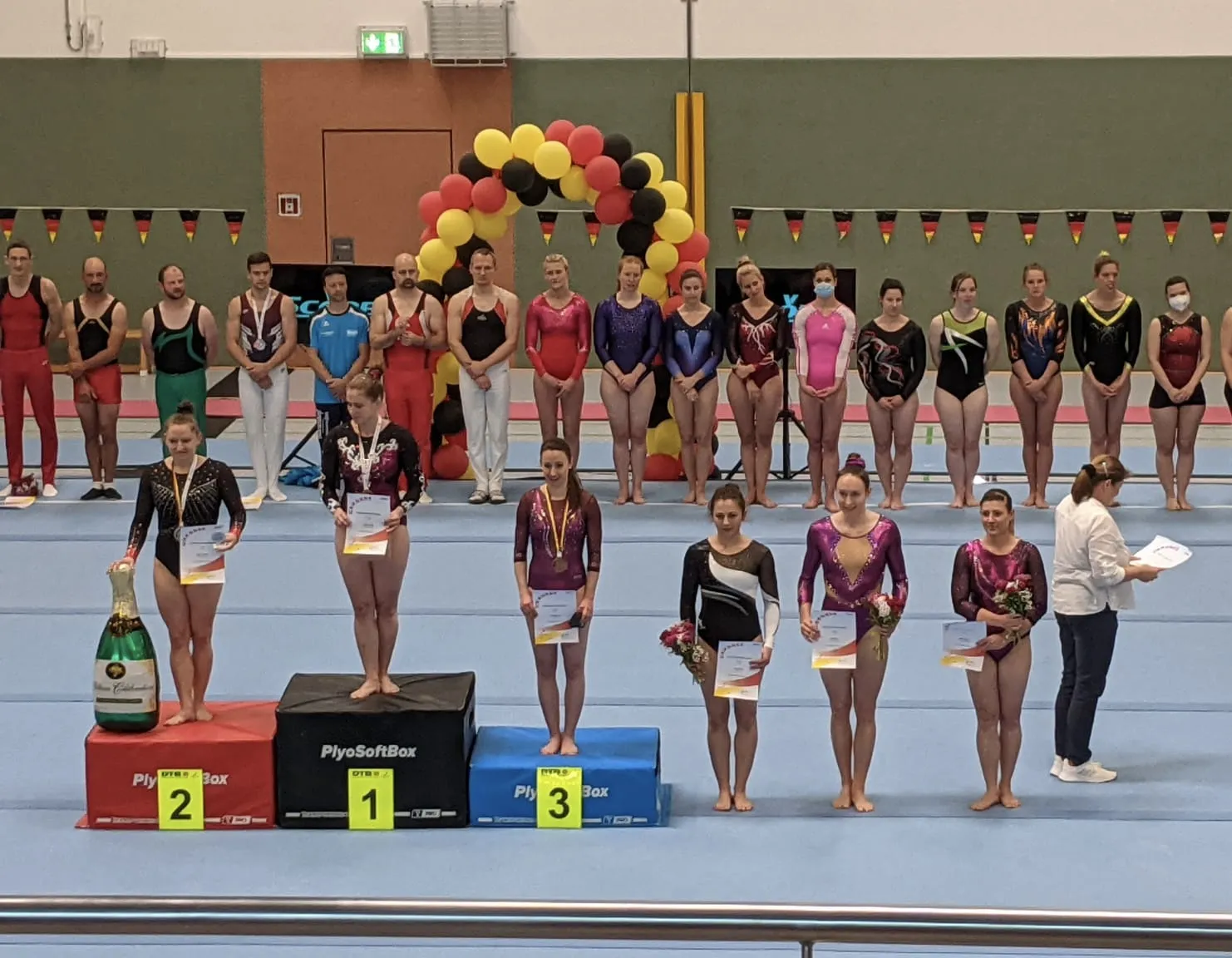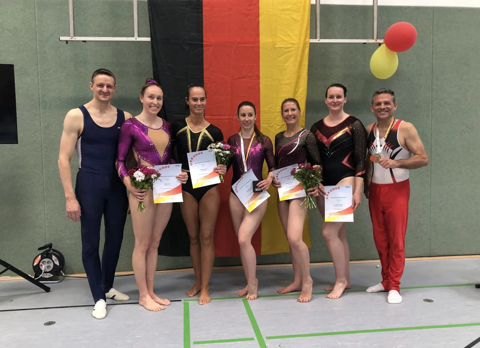 Bei den diesjährigen Deutschen Seniorenmeisterschaften in Markkleeberg ging Sabine Storz in der Altersklasse 30-34 für den Badischen Turnerbund an den Start. Obwohl sie den ein oder anderen Patzer an Barren und Balken in Kauf nehmen musste, erhielt sie für ihren gebückten Tsukahara die Tageshöchstwertung am Sprung. Auch am Boden konnte Sabine mit einer ausdrucksstarken Übung glänzen.
