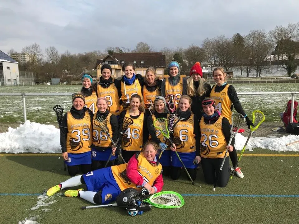 Am Sonntag (18.03) machten sich die Freiburger Pumetten trotz Schneetreibens auf den Weg zum ersten Auswärtsspiel der Rückrunde gegen die Spielgemeinschaft Heilbronn/Stuttgart. Trotz des schneebedeckten Platzes erzielten die Freiburgerinnen schon in der zweiten Minute durch die Torjägerin Julia Gaspar die Führung. Anschließend schafften es die Freiburgerinnen noch zwei weitere Tore zu erkämpfen (Julia Gaspar). Doch auch gelang es Heilbronn/Stuttgart mit einem Tor zurückzuschlagen. Kurz vor Halbzeitpause ergatterte noch die Attackerin Pauline Fleck ein Tor und die Pumetten gingen somit mit einem 1:4 in Führung. Dennoch gingen die Freiburgerinnen betrübt in Pause. Denn zuvor verletzte sich Leonie Herfarth, welche sich schon zweimal bei Spielen ein Kreuzbandriss zugezogen hatte. Die Pumetten mussten nun das Spiel ohne die starke Attackerin weiterführen. So ging es nun mit nur einer Auswechselspielerin an die Kondition der Freiburgerin. Trotzdem schafften sie es, die Führung mit zwei weiteren Toren (Julia Gaspar und Veronika Riebl) zu halten. Gegen Ende des Spiels machte sich dann langsam die Erschöpfung der Pumetten bemerkbar und die Gegner nutzten ihre Chance und erzielten innerhalb kürzester Zeit 2 Tore. Das Spiel blieb abermals spannend und durch die Torfrau Tomke Groeneveld konnten viele Tore verhindert werden. Schließlich kämpften die Pumetten und konnten das Spiel mit 6:3 beenden. Somit erzielten sie einen stolzen Sieg und starten nun frisch auf mit voller Zuversicht in die Rückrunde.
