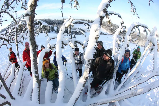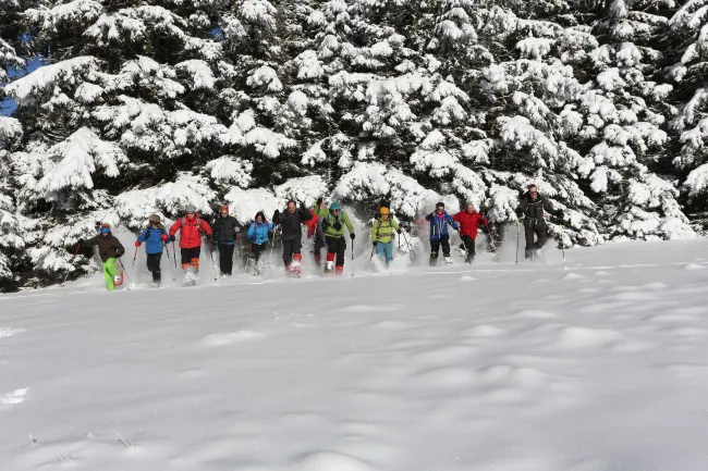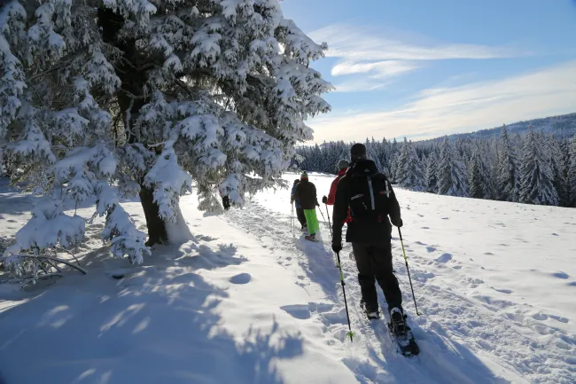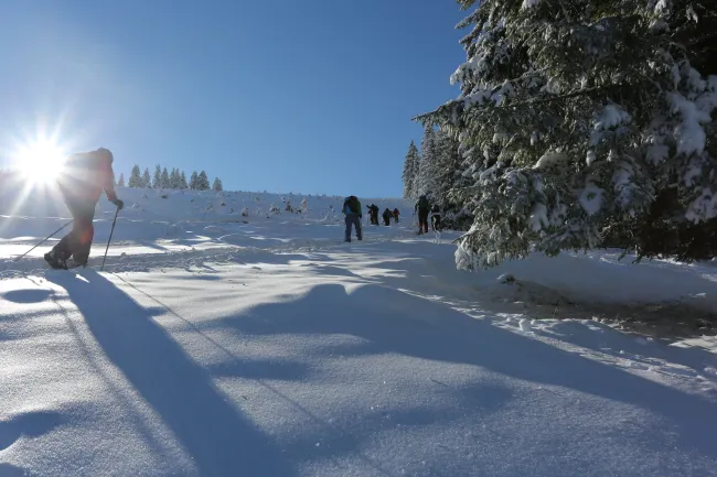 Wir bieten geführte Schneeschuhtouren für Gruppen ab mindestens 5 Personen im Schwarzwald an. Die Dauer und der Schwierigskeitsgrad der Tour wird nach deinen Bedürfnissen besprochen und an deine Gruppe angepasst. Organisiere dich in deinem Freundeskreis und schlage uns deinen Wunschtermin vor. Es können Tagestouren oder auch Touren mit einer Übernachtung in einer Hütte sein. Unsere Ski- und Bergsportabteilung verfügt über Schneeschuhe, Stöcke und Lawinenverschüttetensuch-Geräte (LVS), die du mieten kannst.