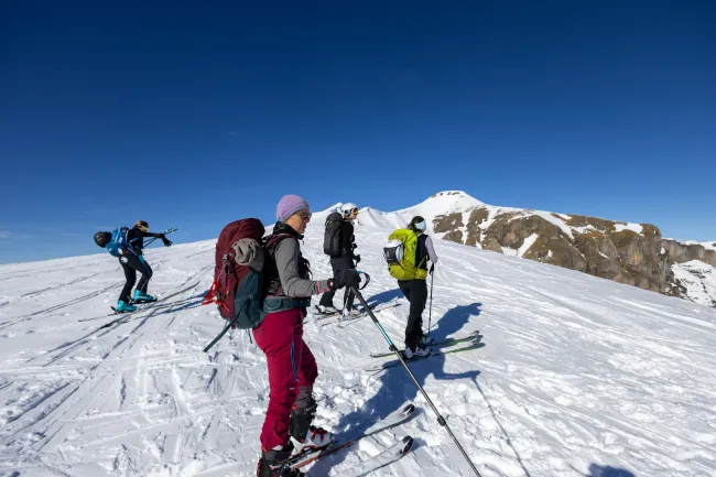 Du erhältst eine fundierte Einführung ins Skitourengehen und lernst, wie eine Tour sicher und mit Spaß gestaltet wird – spezielle Vorkenntnisse sind nicht erforderlich. Du übst die Aufstiegstechnik in flachem und steilerem Gelände und erfährst, wie du deine Ausrüstung optimal nutzt. Ziel ist es, dich im Gelände sicher und sturzfrei zu bewegen. Du wirst mit den Grundlagen der LVS-Suche (Lawinenverschüttetensuche) vertraut sein, kannst die Such- und Sendefunktion deines Geräts anwenden und verstehst, wie du im Gelände Entscheidungen treffen kannst, um das Lawinenrisiko zu minimieren. Deine Fragen zu Bergsportausrüstung und Bewegungsabläufen werden beantwortet und praktisch geübt. Ziel ist es, Freude an weiteren Skitouren zu entwickeln und dabei ein sicheres Gefühl im alpinen Gelände zu gewinnen.