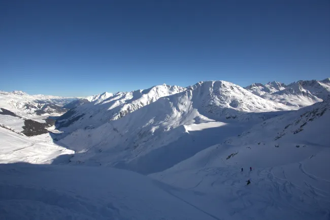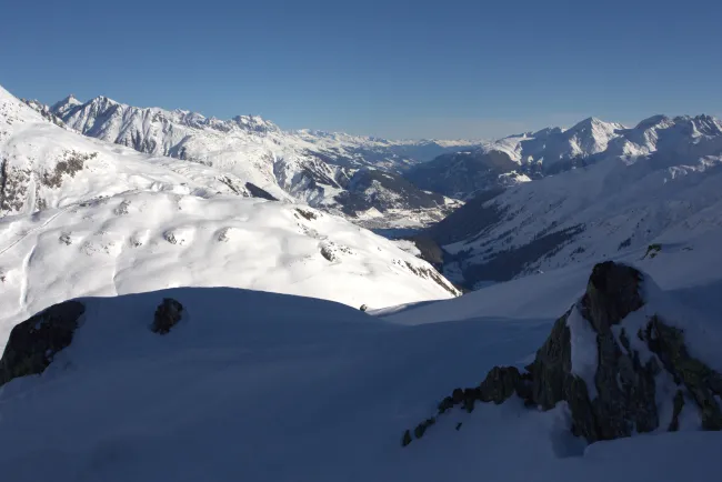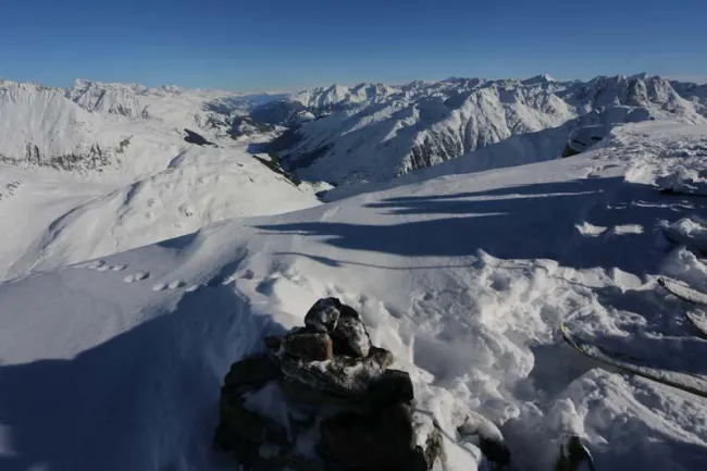 Piz Badus / Six Maduns 2928m, Schwierigkeitsgrad: wenig-schwierig+, 610 Hm Auftsieg, ca. 2h. Beliebter Skiberg mit sehr schöner Aussicht. Wird als Quellberg des Vorderrheins bezeichnet.