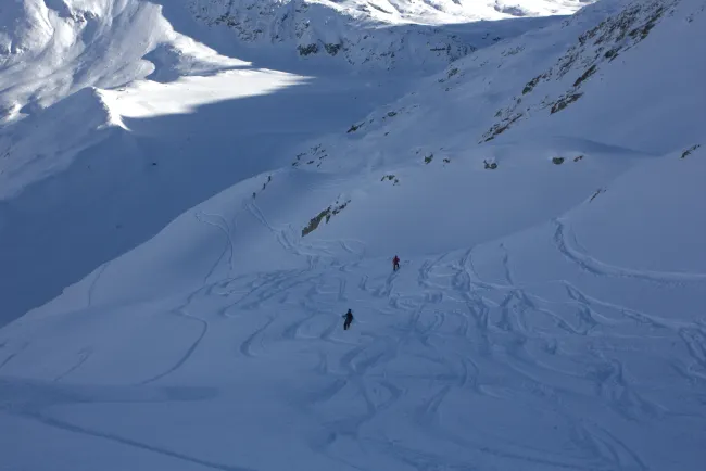Du lernst, welche Entscheidungen im Gelände nötig sind, um das Lawinenrisiko verantwortungsvoll zu minimieren.