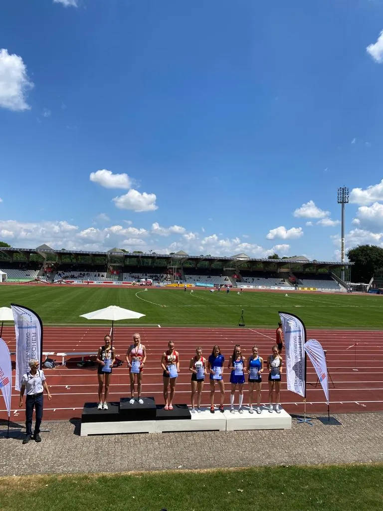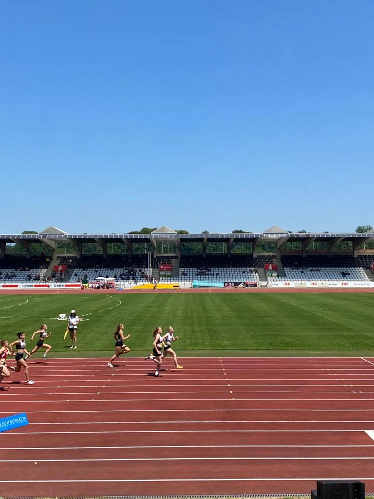 Am 24. und 25. Juni fanden die Süddeutschen Meisterschaften in Ulm statt. 4 Athletinnen der U18 (Martha Schüder, Alma Homberger, Sofia Simon und Lily Hilberath (alle 2007, LC Breisgau) hatten die Chance teilzunehmen. Gemeinsam fuhren sie mit ihrer Trainerin am 24. nach Ulm. Am Samstag standen die 100m, 400m und 800m auf dem Programm. Martha startete als erste über die 400m. Sie lief starke 62,08s und erreichte damit den 8. Platz. Ein toller Start in den Tag. Alma startete kurz danach über die 100m. Sie lief im Vorlauf 12,94 Sekunden und wurde somit dritte in ihrem Lauf. Sofia entschied sich nicht über die 800m zu starten, somit war der Wettkampftag schon um 15 Uhr vorbei. Nach einem entspannten Nachmittag und viel Sightseeing am Abend, starteten die Athletinnen motiviert in den zweiten Tag. Als erstes gingen Martha und Alma über die 200m an den Start. Beide konnten ihre vorherigen Zeiten verbessern. Alma lief die 200m in 26,51s und Martha in 27,63s. Zum Abschluss des Wochenendes starteten alle 4 über die 4x100m. Lily Hilberath legte einen guten Start hin, übergab das Staffelholz an Alma, die es wiederum auf Sofia übergab. Martha legte einen tollen Schlusssprint hin. Sie wurden 15. in einer Zeit von 52,98s und persönlicher Bestleistung.