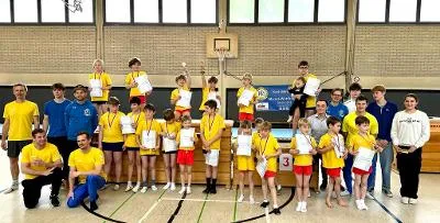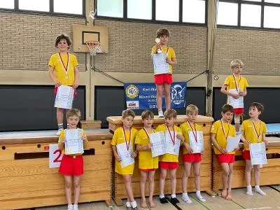 Vor der Siegerehrung sprangen dann noch ein paar Kunstturner aus der Verbandsligamannschaft an die Geräte und brachten mit kurzen Showeinlagen die Zuschauer und Nachwuchsturner ins Staunen. Bei der abschließenden Siegerehrung überreichten die jeweiligen Trainern ihren Turnern jeweils eine Urkunde und Medaille mit der Prägung“ Vereinsmeisterschaften 2023“. Die jeweiligen Erstplatzierten erhielten zusätzlich einen Pokal, der - wie bei den Großen – gebührend gefeiert wurde!