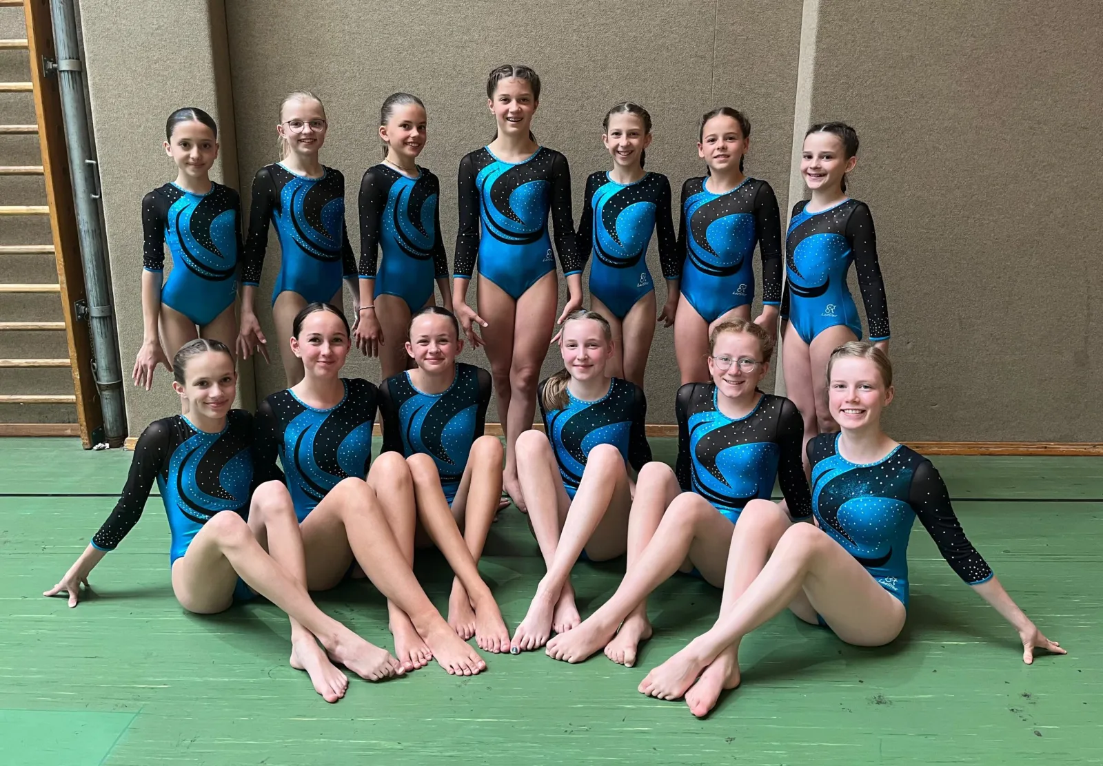 Am Ende setzte sich die jüngere Mannschaft (140,30 Punkte) gegen das Team vom SV Ottoschwanden (135,40 Punkte) durch und konnte somit den ersten Platz mit nach Hause nehmen.Die älteren Mädels (Jahrgang 2011 und 2012) konnten sich mit 148,40 Punkten einen starken 2. Platz bei insgesamt 11 Mannschaften sichern. Platz 1 ging in diesem Wettkampf mit 0,85 Punkten Vorsprung an die FT Freiburg (149,25 Punkte). Platz 3 belegte der SV Ottoschwanden (144,85 Punkte).
