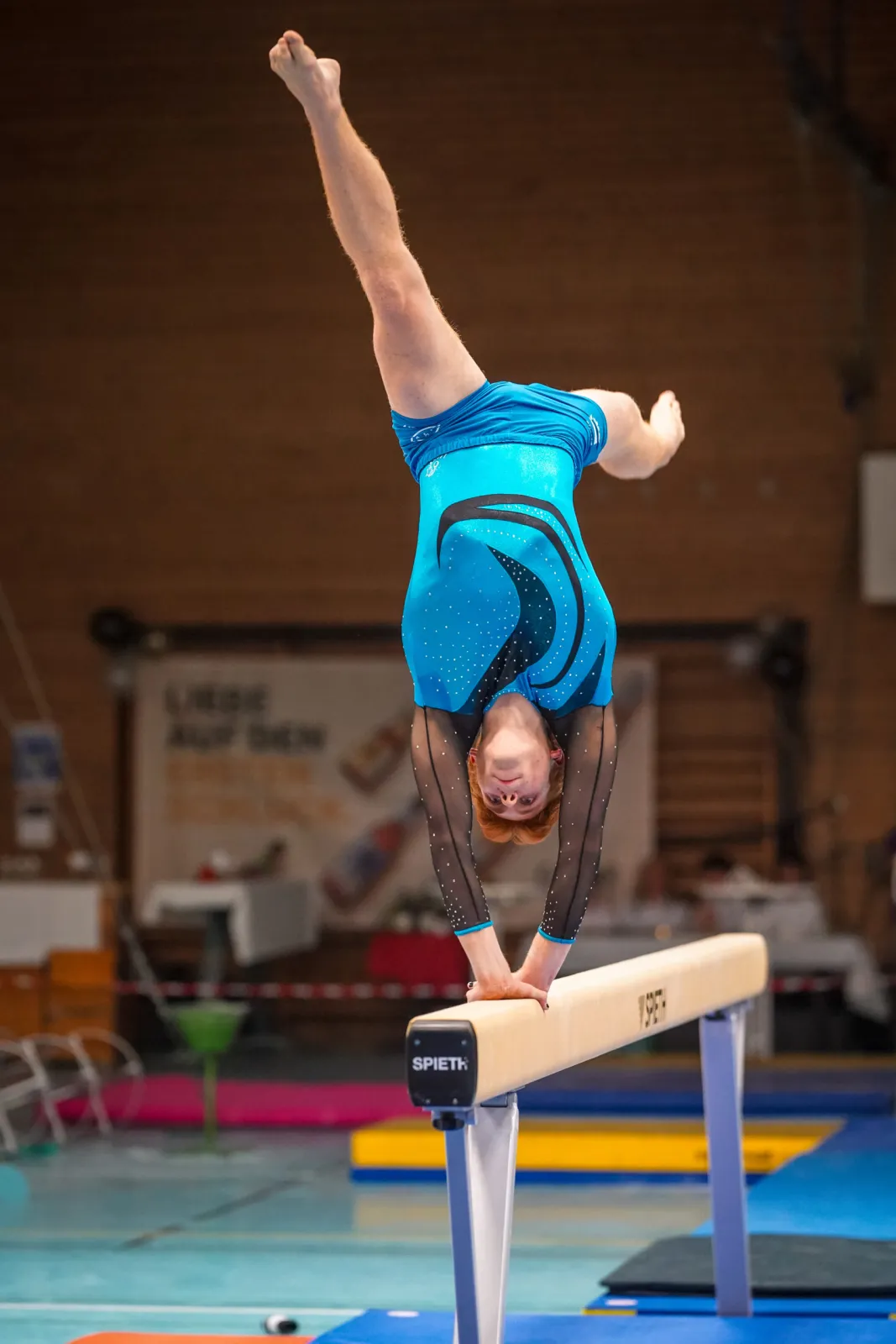 Dank Wetteinsatz auf dem Schwebebalken: Kilian Krapp. Bild: Clemens Wiedenmann