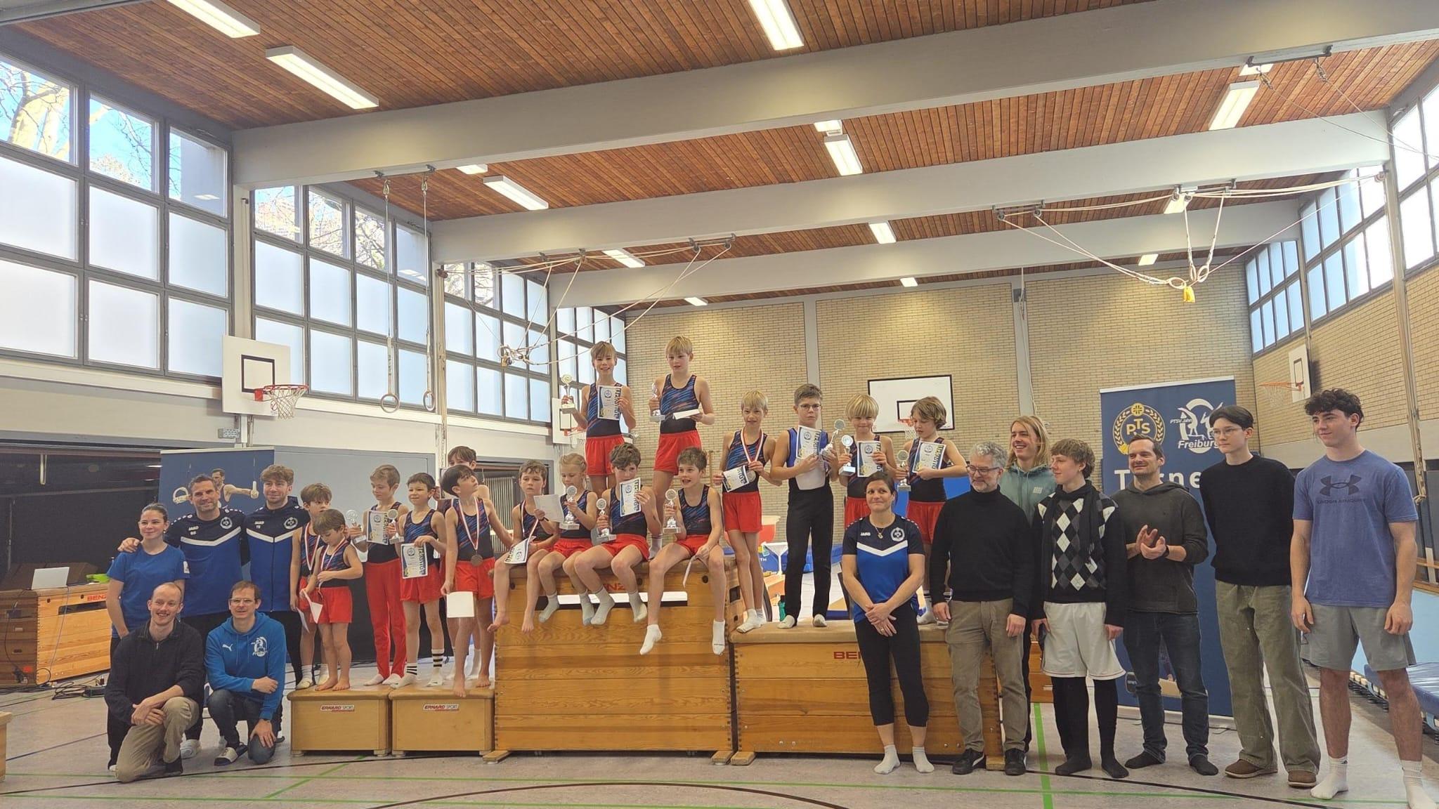 Die hervorragenden Leistungen der Jungs wurden von den zahlreich erschienenen Eltern und Zuschauern mit großem Applaus honoriert. Am Ende des Wettkampftages durften sich alle Turner über Pokale und Medaillen freuen – ein verdienter Lohn für ihren Trainingsfleiß und ihre tollen Darbietungen.