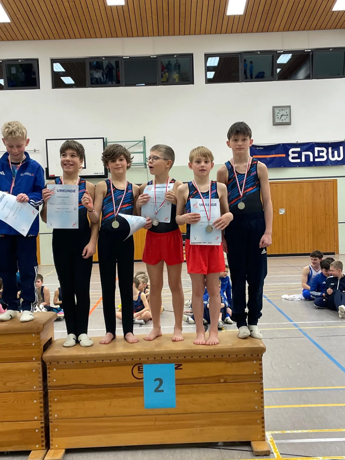 Besonders hervorzuheben sind die Leistungen der Mannschaften in den Altersklassen 2015/2016 (Emil Maier, Samuel Göpper, Vinvent Jonke, Felix Uherek und Lukas Kossmann mit Platz 1)und Altersklasse 2012/2013 (Andrej Bärmann, Tim Jahn, Jani Sütterlin Anton Maier und Noah Seifried mit Platz 2) , die jeweils einen Platz auf dem Podest erreichten. Doch nicht nur die Podiumsplätze zählen – alle Teilnehmenden zeigten großartigen Einsatz und bewiesen, dass sich das intensive Training der letzten Wochen gelohnt hat. Das Trainerteam mit Jana Sütterlin, Jule und Bernd Seifried war durchweg zufrieden und nimmt die starke Konkurrenz als Antrieb für weitere Trainingseinheiten mit den Jungs.