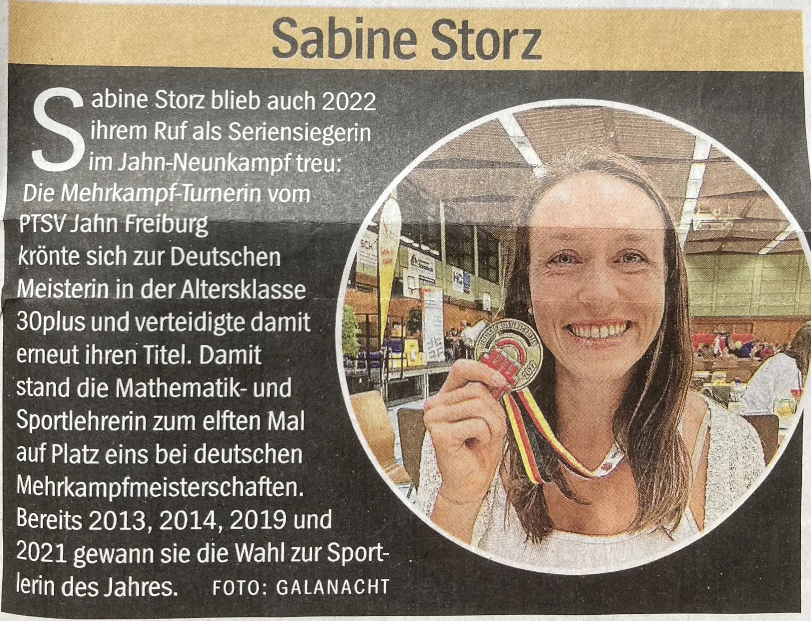 Vom PTSV Jahn Freiburg e.V. sind Sabine Storz (Turnen) als Sportlerin des Jahres und Ultimate Frisbee als Mannschaft des Jahres nominiert.