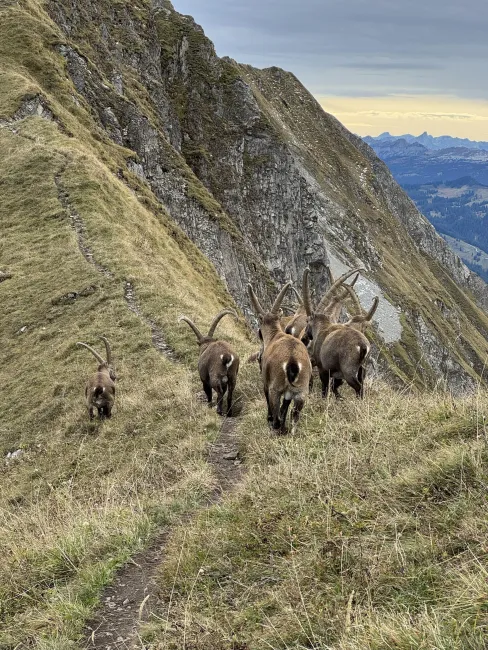 Die erste Etappe beginnt mit einer leichten Wanderung von Brünigpass über das Wilerhorn auf das Brienzer Rothorn, so dass wir uns langsam an die ausgesetzten Wege gewöhnen können. Von dort laufen wir über den Eisseesattel und steigen auf das Brienzer Rothorn. Wir übernachten im Bergrestaurant der Brienzer Rothorn Bahn. Vor dem Frühstück besteht nochmals die Möglichkeit den Sonnenaufgang vom Brienzer Rothorn zu begleiten. Auch von dem Restaurant und entlang des Weges, genießt man eine fantastische Rundumsicht auf Eiger, Mönch und Jungfrau und weitere 690 Berggipfel. Übernachtung im Berghaus Rothorn Kulm. Am zweiten Tag wandert man über den teils ausgesetzten und exponierten Grat über das Tannhorn in Summe bis zu 10 Gipfel bevor wir wieder absteigen nach Oberried am Brienzer See. Entlang des Weges haben wir sehr gute Chancen die eine oder andere Gruppen von Steinböcken zu sehen. Nach einem erfrischenden Bad treten wir die Rückfahrt nach Freiburg an.