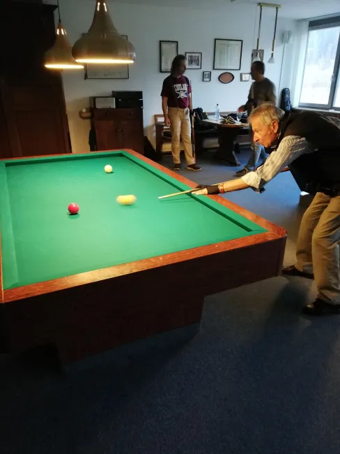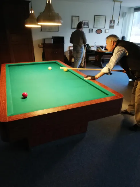 Am 18. Dezember, gerade noch rechtzeitig vor den Weihnachtstagen trafen sich die Mitglieder der Billardabteilung zum alljährlichen Weihnachtsturnier. Hier stand vor allem die Geselligkeit und der Spass an erster Stelle. In entspannter Atmosphäre wurde gefachsimpelt, kommentiert, angefeuert, gelobt und nebenbei die Gelegenheit genutzt auch mal wieder mit den Mitgliedern ins Gespräch zu kommen denen man sonst nicht so oft im Laufe des Jahres begegnet. Wir alle hatten viel Spass und haben uns miteinander sehr wohl gefühlt. Und nach dem Turnier gings noch eine Etage tiefer ins Restaurant zum gemeinsam Essen und Ausklingen lassen.